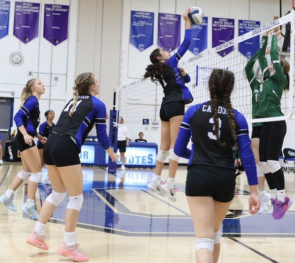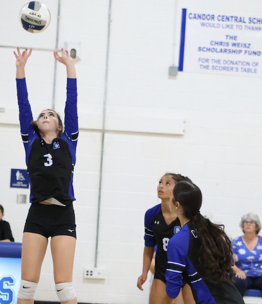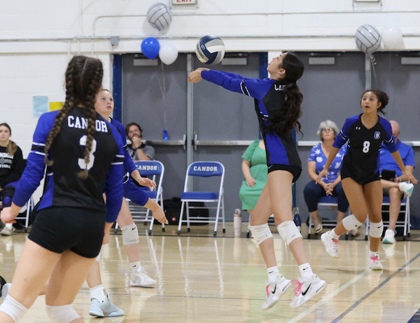 Tori Hall led Candor with 13 points (two aces), two kills and two assists, while Ashlan Heidl had nine points (four aces), five assists, and one block, Anna Kelsey had three points and two kills, Ava Halstead and Kaedyn Everhart added four points apiece, and Ava Anderson chipped in with three points (two aces).