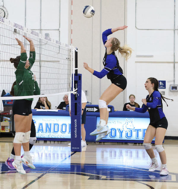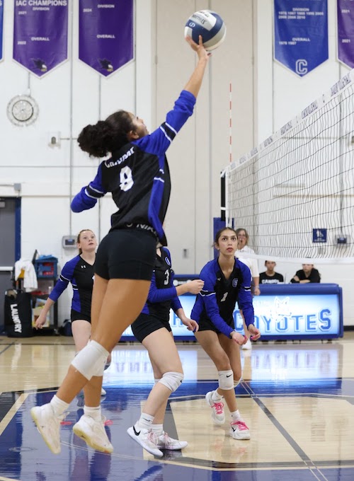 Jill Teribury had eight points (two aces) and two digs for the Coyotes, while Valeria Polanco-Gil had eight points (two aces), Ava Fernando registered three kills and one block, and Nora Young,