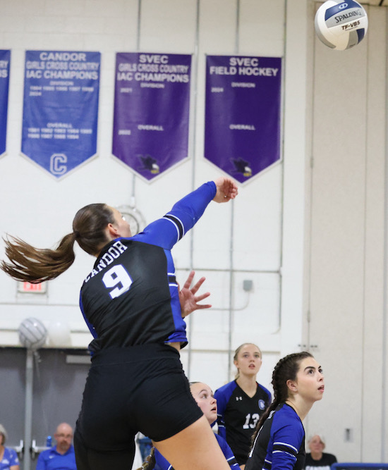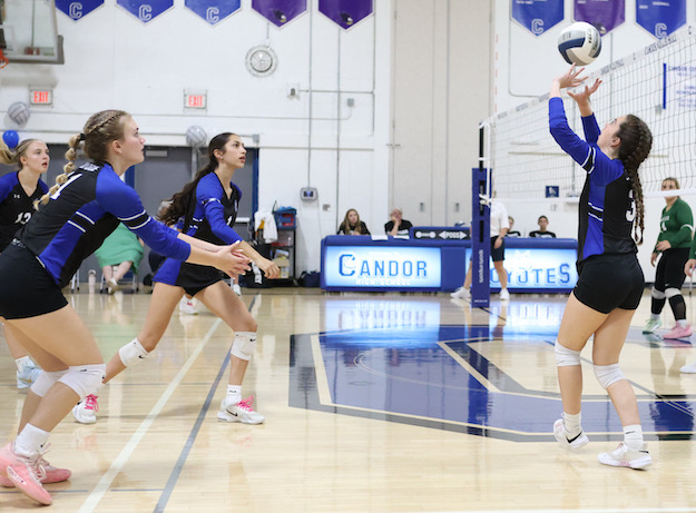 Nicola Soper led Candor with nine service points, including four aces, 14 kills, one block, and five digs, while Malley Heidl had eight points (three aces), two kills, 27 setter assists, and three digs, Emmi Makie had three points, 12 kills, and six digs, and Hazel Ray tallied 12 points (three aces).