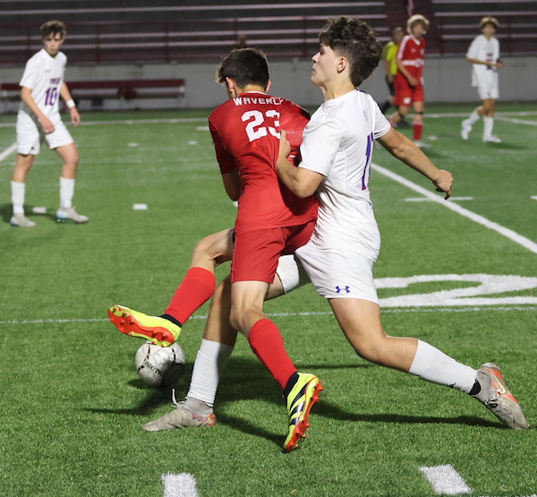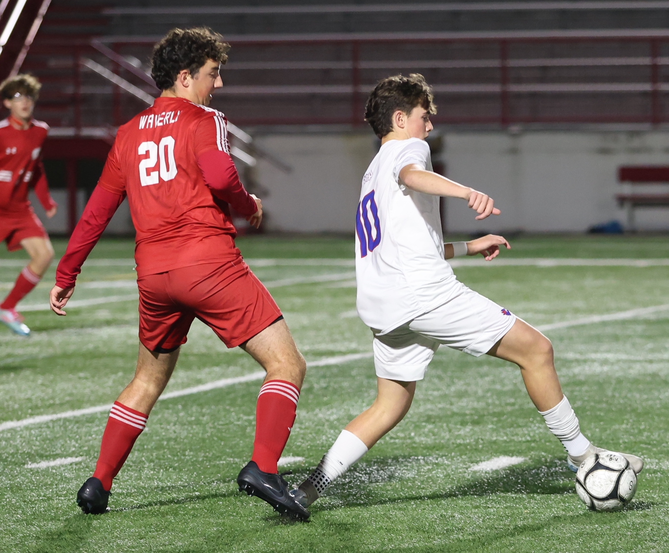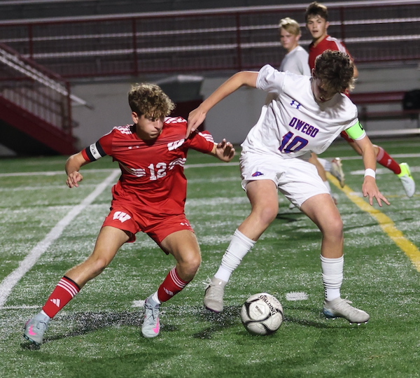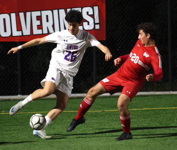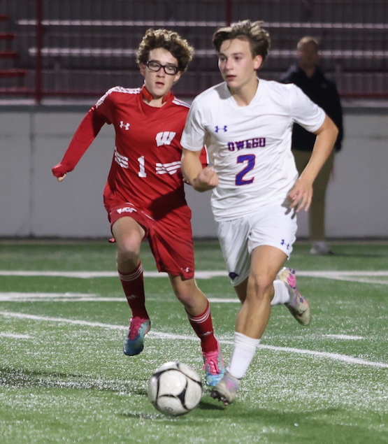 STAC BOYS SOCCER: WOLD'S HUSTLE PLAY KEYS OWEGO'S 2-0 WIN OVER WAVERLY (24 PHOTOS) (2025-10-02) Tioga County Sports Report WAVERLY — Mason Wold's hustle play turned into a goal late in the first half, leading Owego to a 2-0 win over Waverly here Thursday night in STAC Central Division boys soccer action at Memorial Stadium.