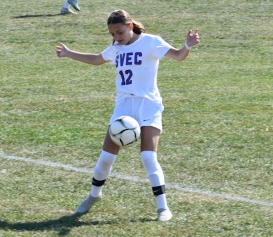 Tioga County Sports ReportUNION SPRINGS — Eighth-grader Melanie Stevens scored a pair of goals and dished out one assist to lead SVEC to a 3-0 win over Union Springs here Friday afternoon in IAC Large School crossover girls soccer action.