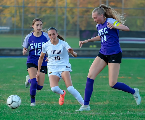 Tioga County Sports ReportCANDOR — SVEC scored early in the second half to take the lead, but Tioga finished the game with three unanswered goals for a 4-2 win here Monday afternoon in IAC girls soccer at Candor High School.