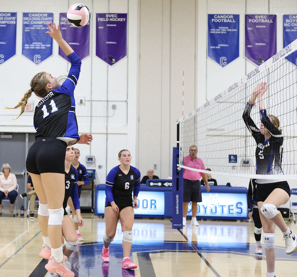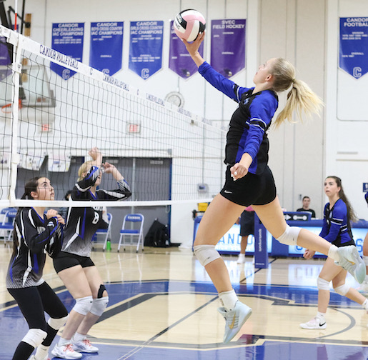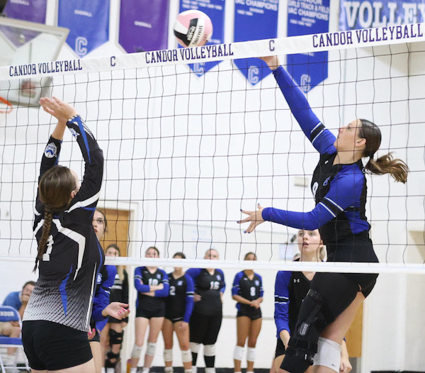 Emmi Makie led Candor with 12 points, including eight aces, and eight kills, while Nicola Soper had seven points, including five aces, and 10 kills, and Montana Vorhis had nine points (five aces) and two digs.