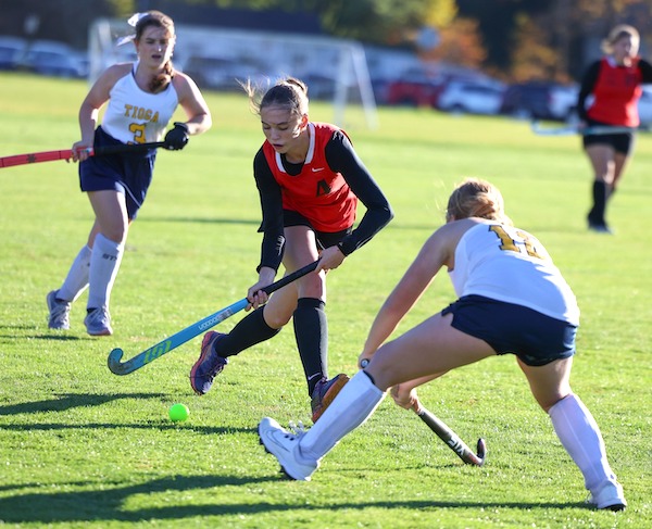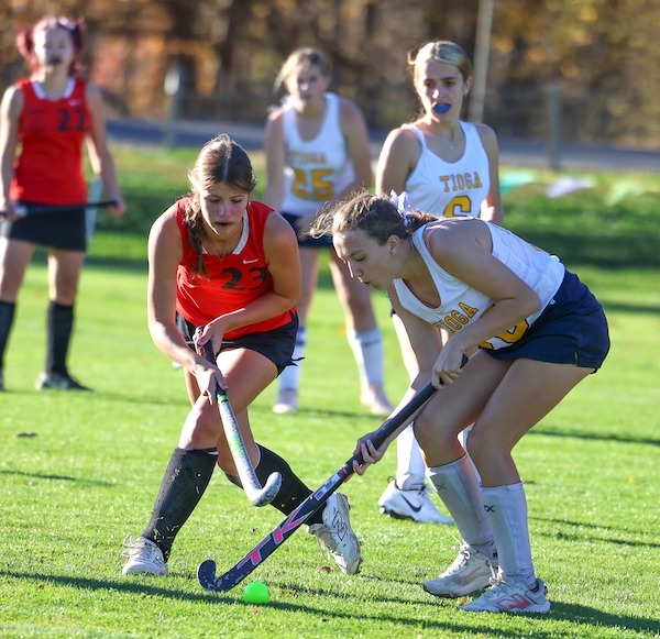 SECTION IV FIELD HOCKEY: FOURTH-QUARTER GOAL LIFTS TIOGA TO 1-0 WIN OVER NEWARK VALLEY IN SEASON FINALE (20 PHOTOS) (2025-10-16) Tioga County Sports Report NEWARK VALLEY — Tioga scored early in the fourth quarter to pull out a 1-0 season-ending win over Newark Valley here Thursday afternoon in Section IV field hockey action.