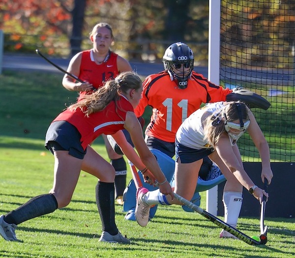 After three scoreless quarters, Taylor Sindoni was able to hit the tin in the back of the cage about five minutes into the fourth quarter off a penalty corner.