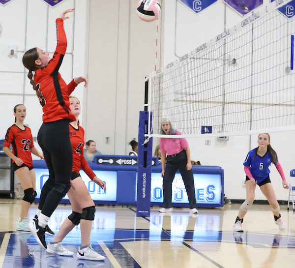 Anna Kelsey had four points, four kills, and eight digs in the win, while Tori Hall had two points and 12 assists, Ava Halstead added four points (two aces), and Lizzy Kunte recorded nine digs.
