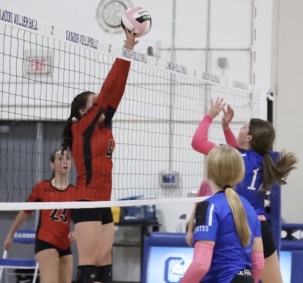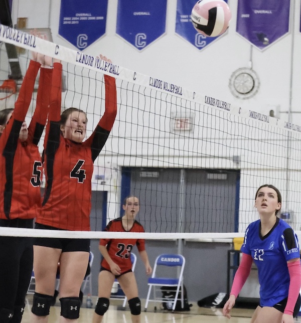 Ashlan Heidl led Candor with eight service points, including three aces, six kills, two setter assists, and two digs, while Kaedyn Everhart had eight points and three digs, and Ava Anderson had five points (three aces), three kills, and one block.