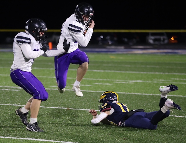 A 27-yard gain by Max Stauder and a 13-yard keeper by Jack Bombard highlighted a 62-yard drive capped by Stauder’s 1-yard run, making it 28-7 with 1:06 on the clock.