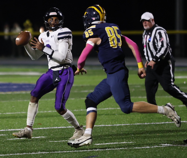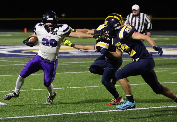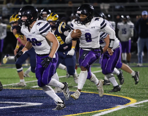 The first was a 41-yard TD run by Jayden Duncanson on the third play of the third period. Logan Bellis converted the PAT run for a 22-7 lead at 10:32. The score was set up by Kadin Cole’s 23-yard kickoff return to the SVEC 49.