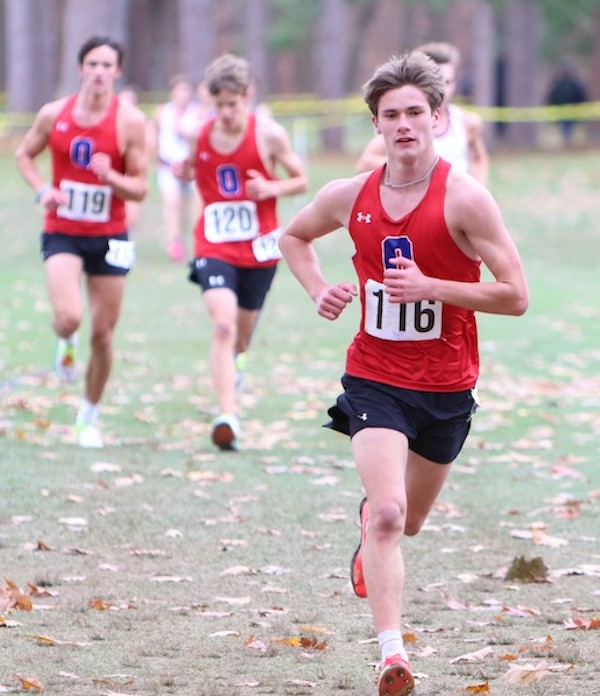 Junior Everett Tirnato-Snow (19:45.0), freshman Joram Belokur (19:49.0) and junior Cadon Wasilewski (19:50.5) finished 20th through 22nd, respectively, for the River Hawks, while sophomore Lucas Wall was 24th in 19:54.1, sophomore Brady Senko was 27th in 20:15.4, and senior Henry Schultz Larson was 29th in 20:56.2.