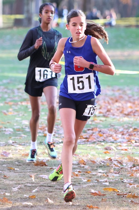 Senior Abigail McHugh finished second in a time of 21:00.3, while senior Jaelyn Chrysler was third in 21:04.2, 8th-grader Sarah Heath was fifth in 21:08.0, and senior Stella Palladino was seventh in 21:49.6.