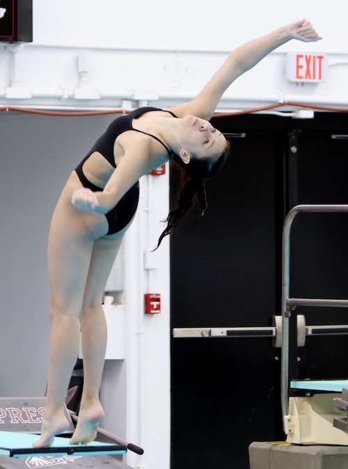 Young had an 11-dive score of 484.95 to win the 1-meter diving competition, with M-E's Leah Rozelle second with 376.05 points, and M-E's Jaqueline Blight third with 322.7 points.