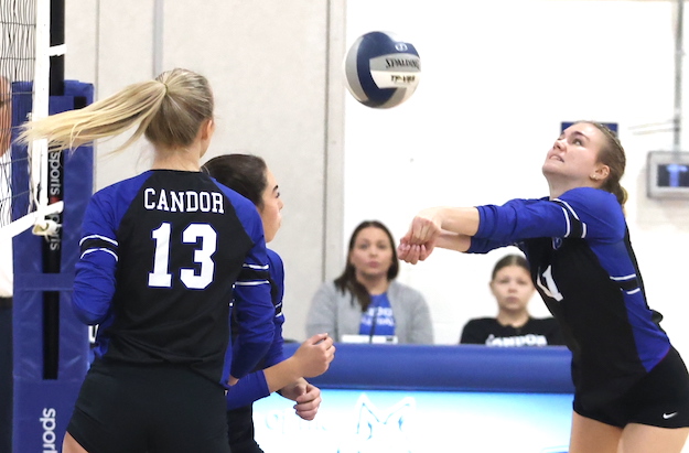 Makie registered her final kill of the day to give Candor a 24-15 lead, and the game ended on a service point by Reynolds and a block at the net by Heidl.