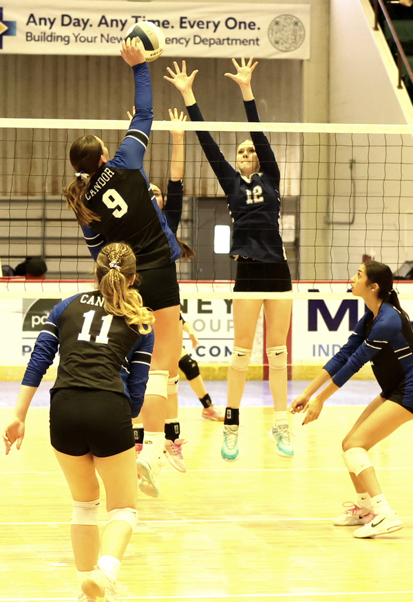 The bottom fell out for Candor in game two as they fell behind, 17-4 at one point. The Knights’ tall middle hitters, Brianna Parsons and Fiona Grant, posed a problem at the net, and CC Bionda and Bailey Orman provided some quality serving.
