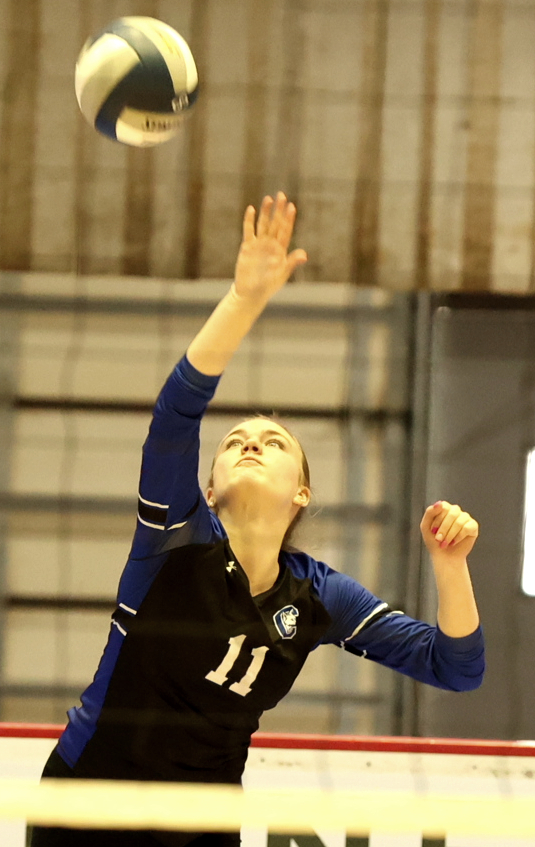 A Mikal Towers tapper at the net made it 19-15, but Makie responded with a tap at the net for a side-out to make it 19-16. Senior Jill Teribury stepped to the service line and reeled off six consecutive points, using two big hits from Makie before closing out the run with an ace to give Candor a 22-19 advantage.