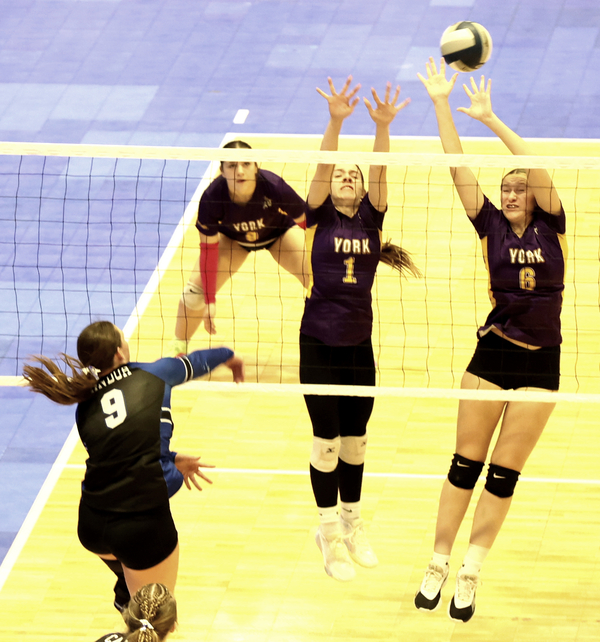 The Coyotes dominated the early action, jumping out to a 6-1 lead. They stretched it to 11-4 and eventually built an 18-9 cushion before York started to rally. Four Candor hitting errors, a swap of side-outs and a long out-of-bounds hit by the Coyotes helped narrow the margin to 21-19.