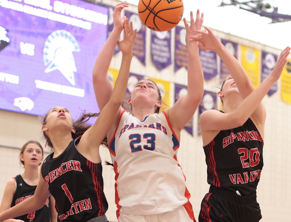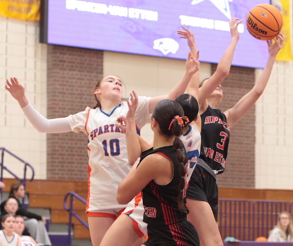 Madelyn Harrison knocked down a pair of 3-pointers in the fourth quarter for her only points of the game, and Mali Huffner added five points, including a 3-pointer, to fuel a game-ending 17-11 run to lift the Spartans to the win.