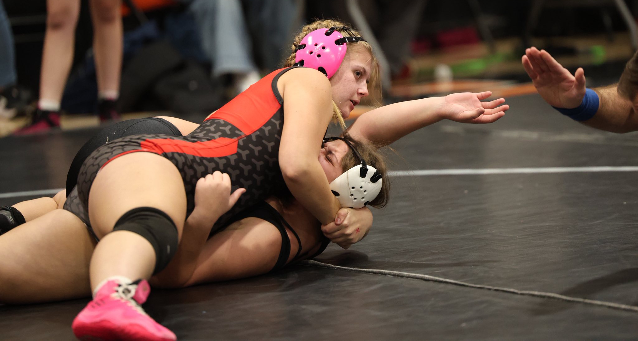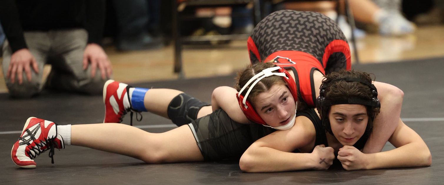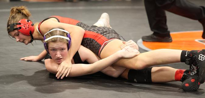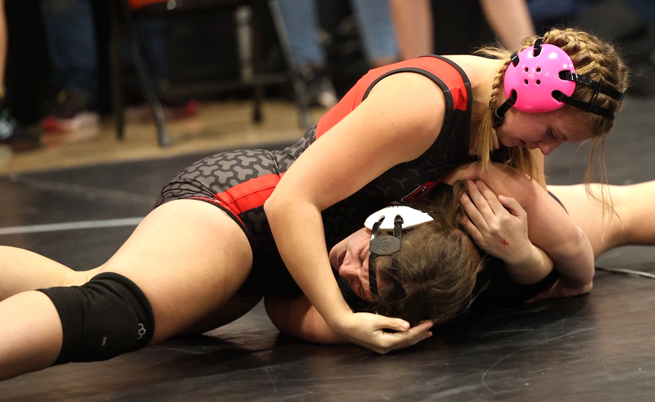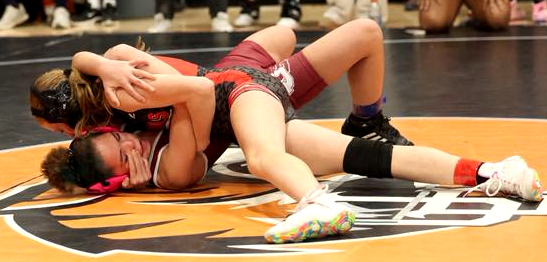 Hadley Merrill (100) and Billeigh Dawson (132) contributed fourth-place efforts. Dawson was 3-2 with a forfeit win, and falls in 1:15 and 1:42 while Merrill scored a 14-second pin.