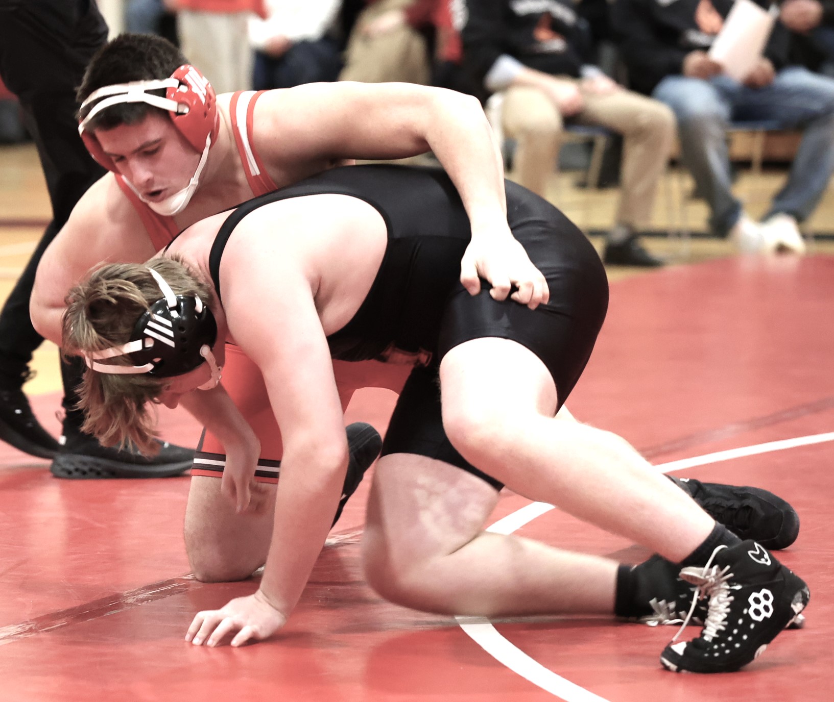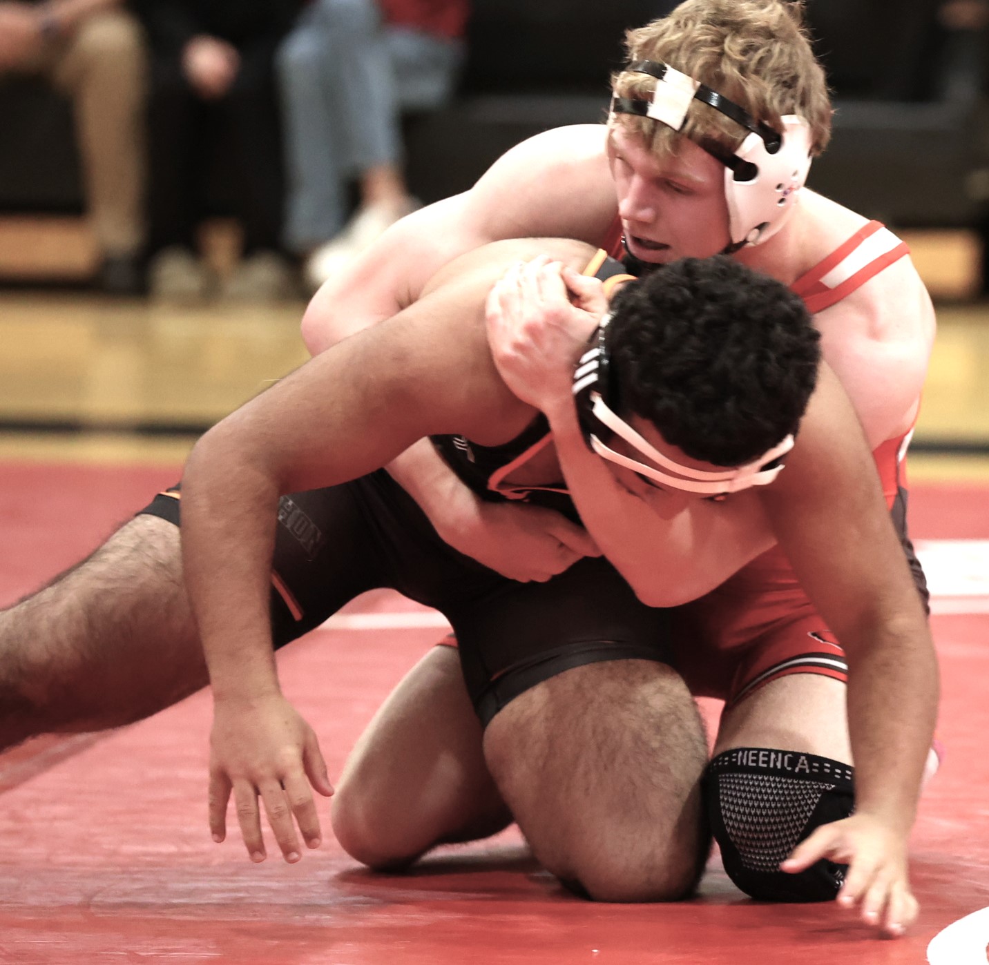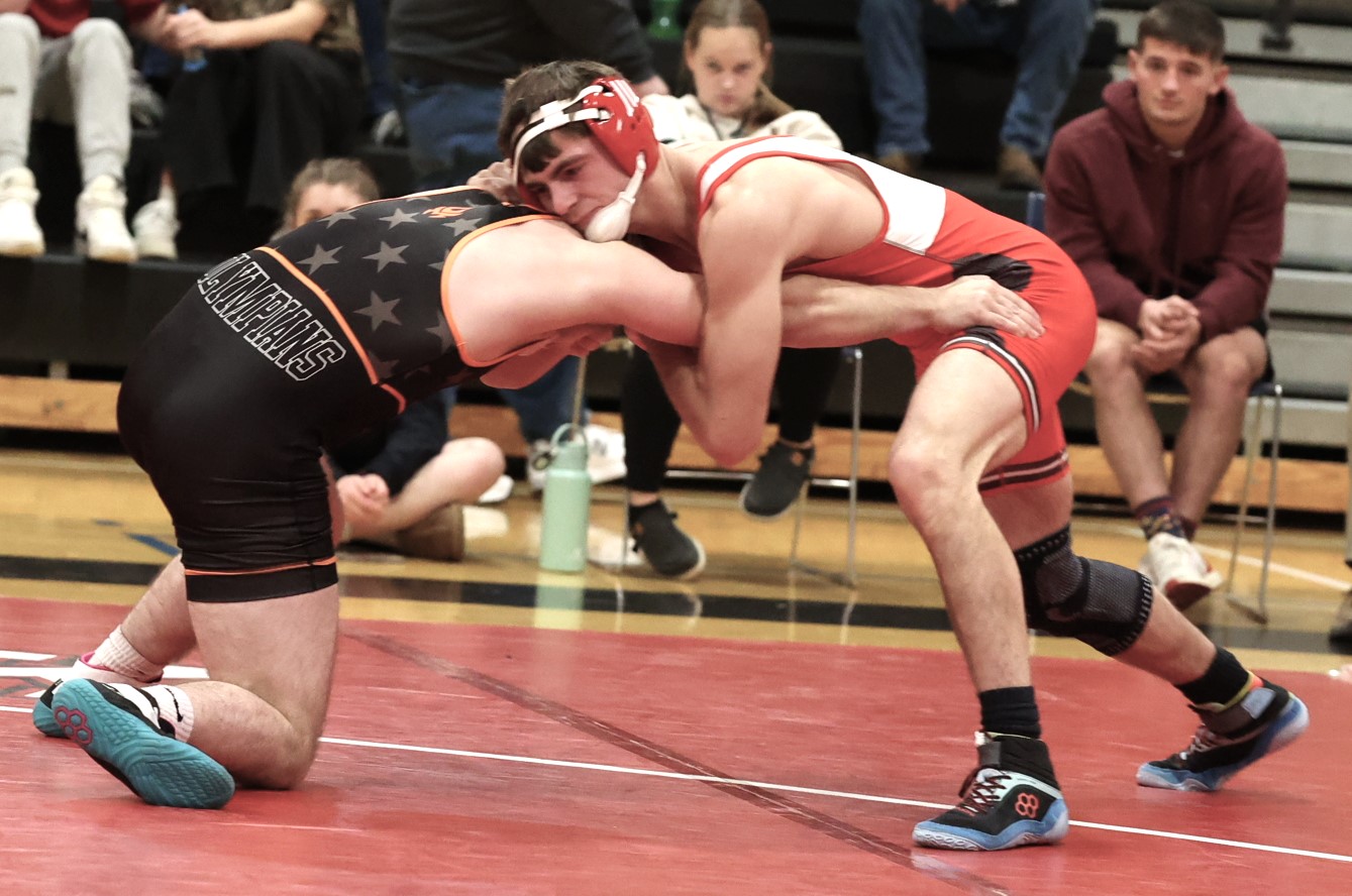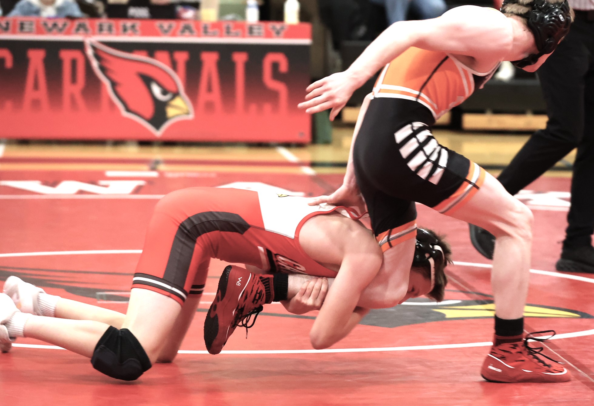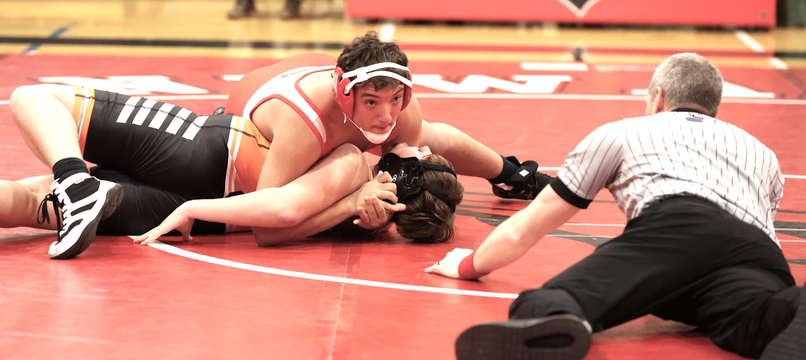 The half-dozen forfeits gave NV a 60-5 cushion and the final three bouts ended in falls. Wyatt Dillow (215) pinned Ethan Crumb in 1:30, Jack Blomberg (285) took care of Ayden O’Donnell in 1:27 and Adam Kunze (103) ended the match with a pin of Henry Donah in 3:27.