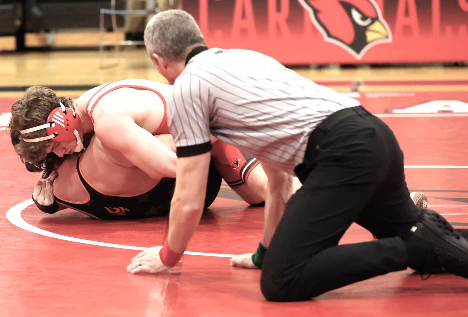 The quickest pin of the night came at 138 when Leland Houston decked Ryan Infante in 36, giving the Cardinals a 24-5 advantage.
