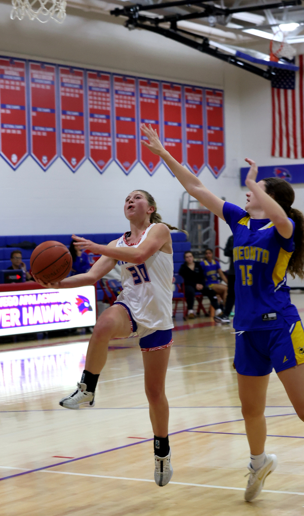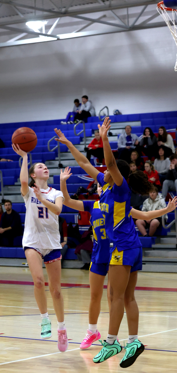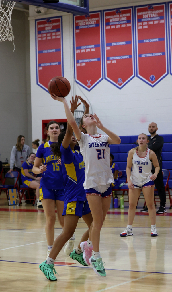 Oneonta’s Kendall LaFever scored the first bucket of the second half, but the River Hawks responded with a nine-point run, taking its first lead at 31-29 on a Jenna McEvoy three.