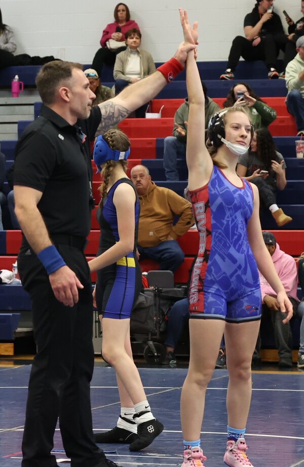 Also competing for the River Hawks were Hannah Hildebrandt, Tatum Kowalski, Madison Partridge and Izzy Taylor. Kowalski went 2-2 with a pair of first-period pins and was eliminated in the “blood” round.