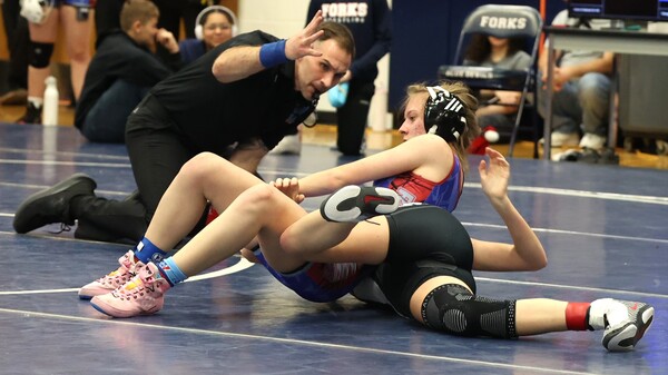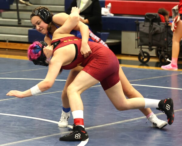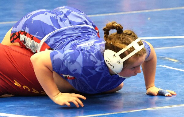 She hasn’t lost a step, it appears, as she continues to dominate opponents. She pinned Ithaca’s Kailynn Holmes in 35 seconds, then decked Windsor’s Ana Cartagena in 2:53. In the finals, she tamed Chenango Forks’ Jillian Howell, scoring a 10-0 tech fall in 2:17.