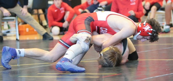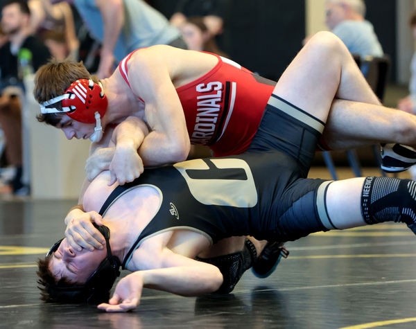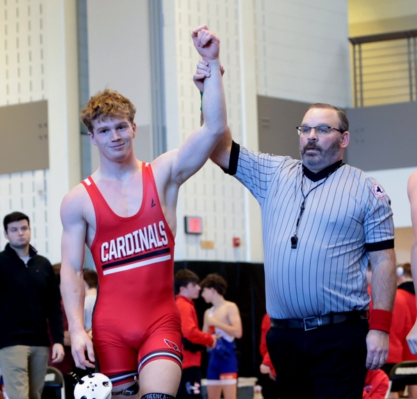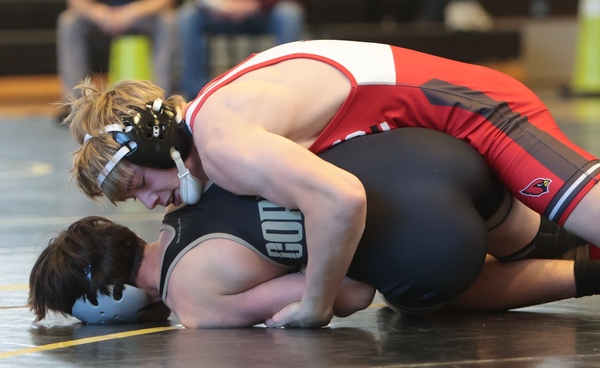The match of the day pitted the Cardinals against 8-time Section V defending champion and undefeated Canisteo-Greenwood. The Chargers scored eight bonus-point wins to take the match, 44-28. Creeley claimed a major decision while Rhodes and Callahan won by decision. Houston, Escalante and Woodin accepted forfeits.