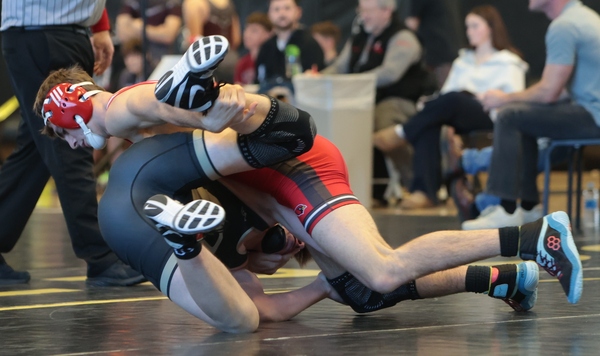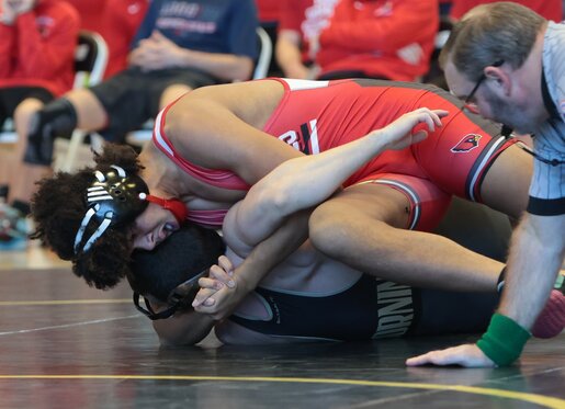 138: Connor McCaffrey (C-G) pinned Leland Houston (NV), 3:15