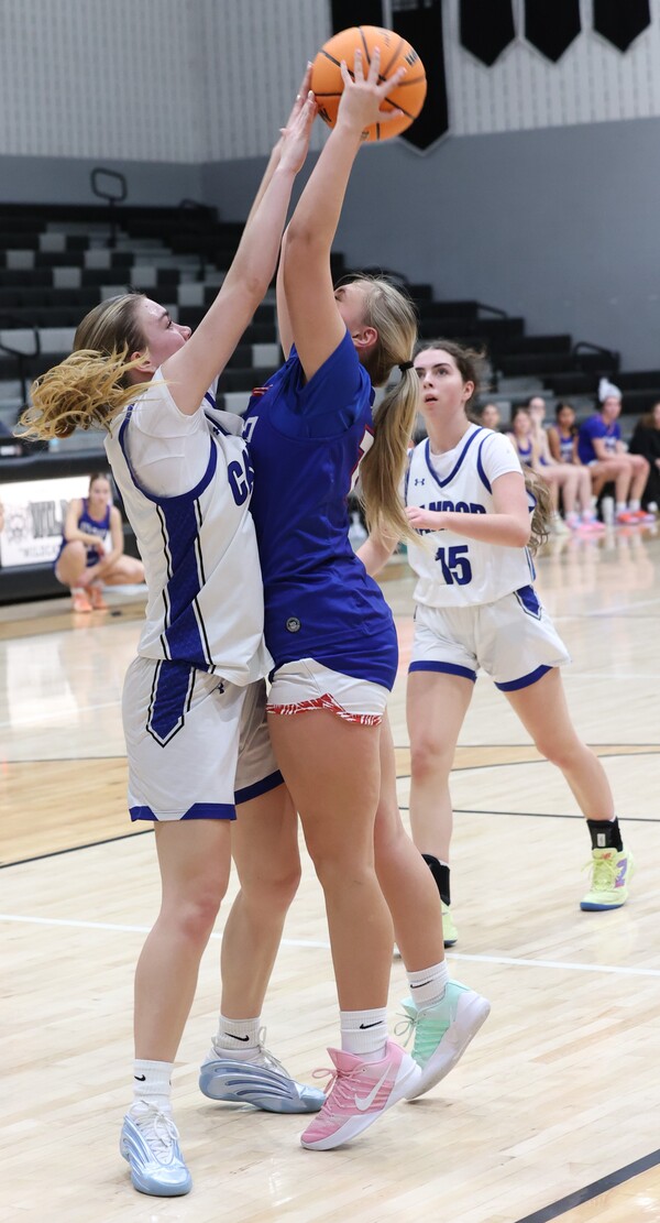 Not long after that, Eva Crawford sank a pair of free throws to push the lead to 41-33, but Makie countered with a three ball and Megan Williamson found Hazel Ray with a cross-court pass for a basket to trim the margin to 41-38 with 2:24 remaining.
