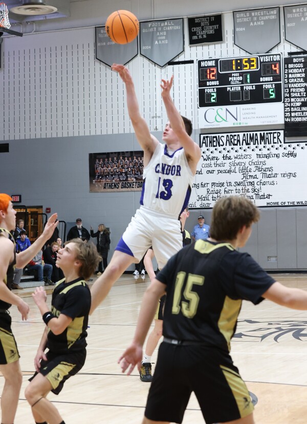 Candor would build leads of 16 points in the second quarter on a Donald Makie 3-pointer, and baskets by Teagan Kwiatkowski and Jakobe Foster, but A-P started to chip away and trailed 28-17 at the half via an 8-3 run.