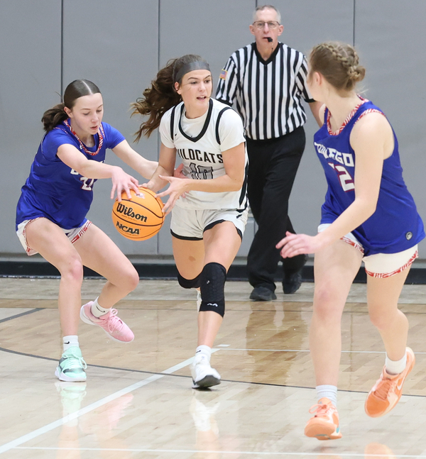 Alissa Vough, McKenna Jarvis and Allison Kemp combined to sink four free throws then Jarvis drained a pair of 3-pointers and a free throw to counter free throws by Eva Crawford and Searles and pull the Wildcats within a point at 13-12.