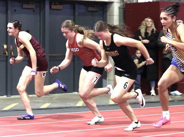 In the girls meet, Abigail McHugh and Stella Palladino highlighted the River Hawks’ effort with runner-up finishes. McHugh posted a time of 5:53 in the 1500 run while Palladino clocked 7.52 seconds in the 55 dash.
