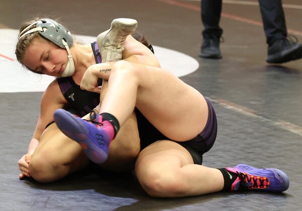 In her first match, the senior displayed her skills with a quick 4-point fireman’s carry against Tyler, then wrapped two more exposures around a takedown for the 10-0 tech fall in 34 seconds.
