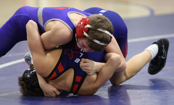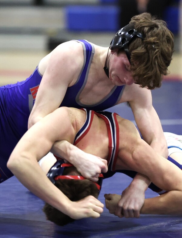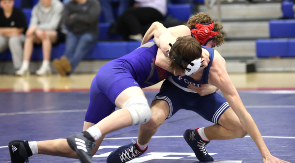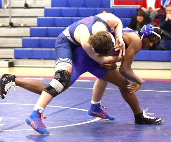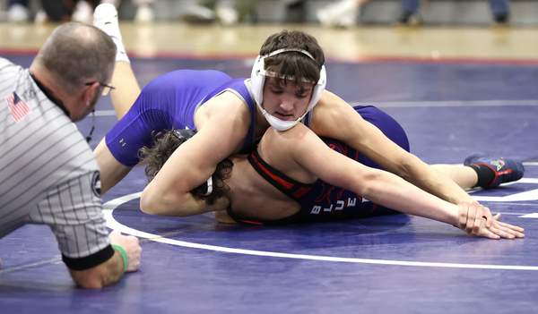 The Blue Devils opened the match with Brody OHern’s 6-0 win over Gavin Lovell. OHern, a Division I honorable mention in the rankings, scored his points with takedowns in the first and second periods, then withstood Lovell’s attempts to score points on top over the final two minutes of the bout.