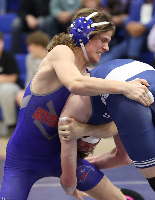 Also impressive for the River Hawks were back-to-back falls by Mamas Gehring at 132 and John Cornwell at 138. Gehring ran up a quick 8-1 advantage against Connor Williams before decking him in 1:30 while Cornwell was leading Brayden Baer, 3-1, prior to pinning him in 1:50.