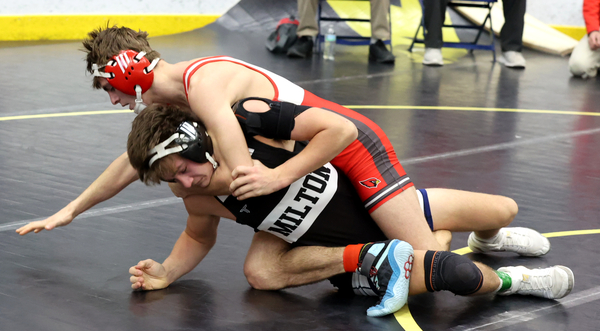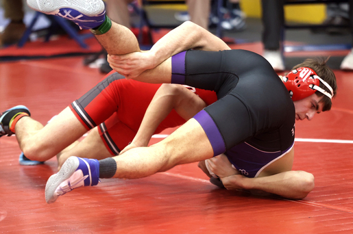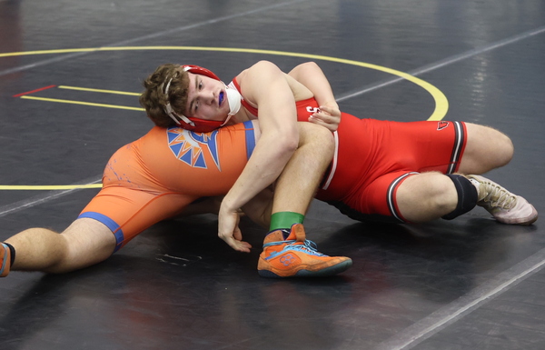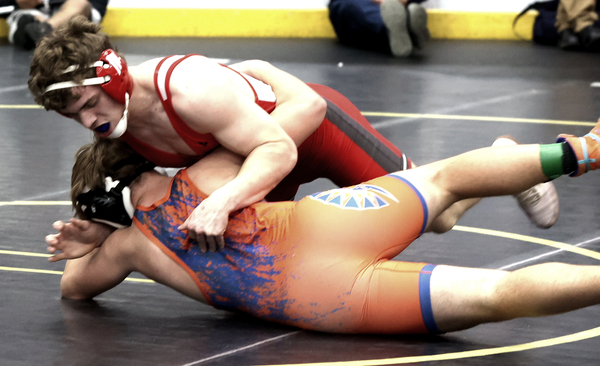 Titus Callahan (190) pulled off a pair of third-period falls before suffering a loss. His pins came at 5:32 and 5:17.