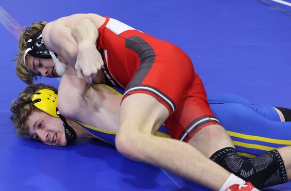 Blomberg went 2-2 with pins in 19 seconds and 4:19. He dropped a 2-1 heartbreaker to Brock Rosemark of Elmira, who went on to win the weight class.