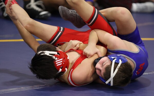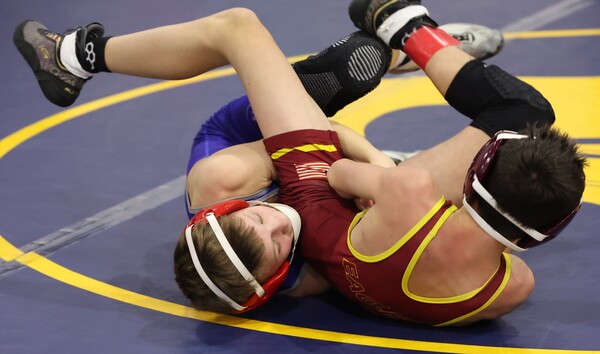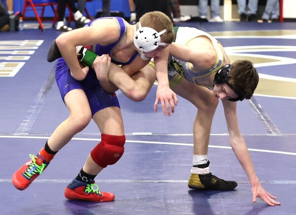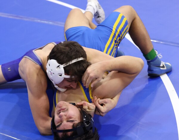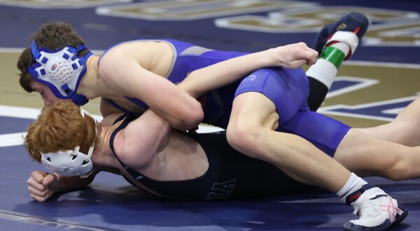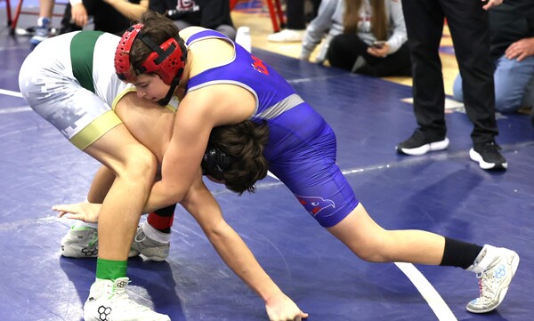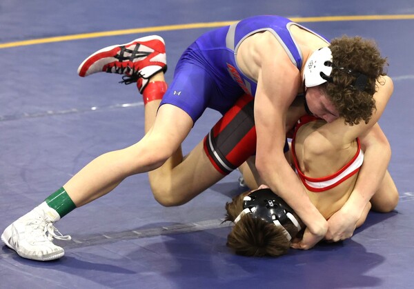 Gavin Lovell was the runner-up at 103, going 3-1 on the day. In the finals, he dropped a 6-2 decision in a battle of 7th-graders to Baldwinsville’s Kaleb Pollock, who has already surpassed the 30-win mark (32-2) this season. Lovell (16-4) started out with falls in 1:23 and 3:24, and also had an 18-4 major decision.