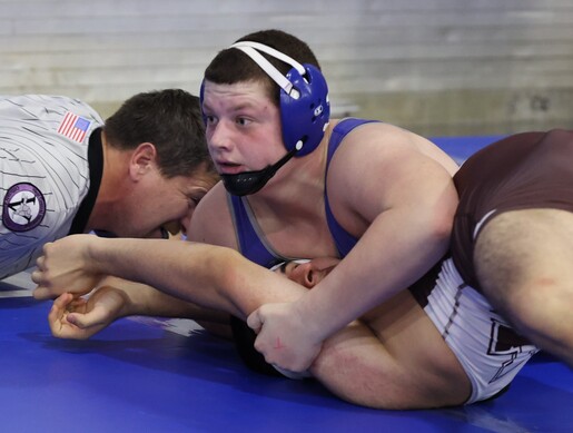 The River Hawks had a third runner-up as well in Robert Curley at 118. Going 3-1, he racked up falls in 1:10, 53 seconds and 1:25 before falling to Baldwinsville’s William Lamson (29-6) via pin in 48 seconds.