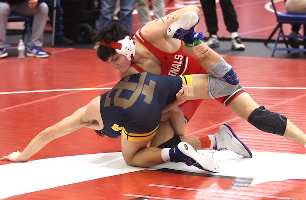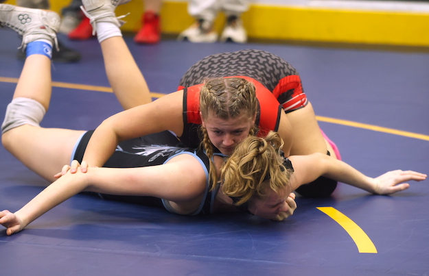 The Cardinals' Tressa Middendorf would finish eighth at the same weight. In the blood round, she pinned Fulton's Caeli Bartlett in 2:14 while trailing, 10-6, then dropped her final two matches. She was 3-3 on the weekend.