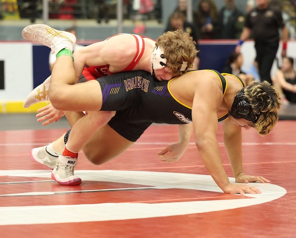 Logan Woodin (150) advanced to the championship semis, but lost that bout and his first wrestleback match by fall. He medical forfeited the fifth-place bout to Waverly’s Parker Larson.