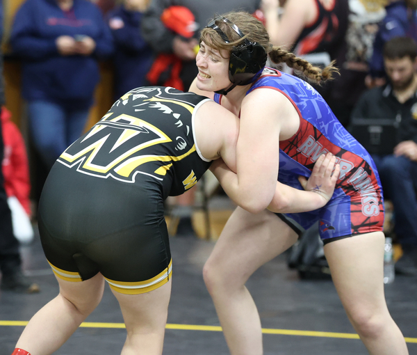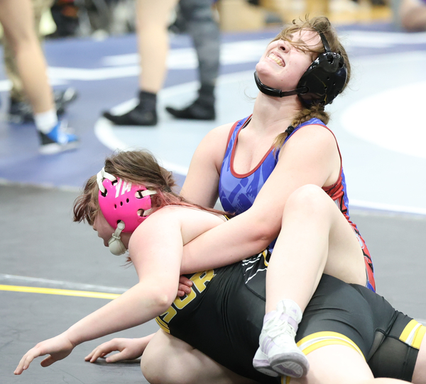 Daly bounced back with a fall in 1:53 over Valley Central’s Sabrina Mandeville before scoring a 12-2 tech fall against Spencer-Van Etten/Candor’s Taylor Zufall in 3:30. She met Abby Aldrich a second time in the placement round and won another close one, 6-4.
