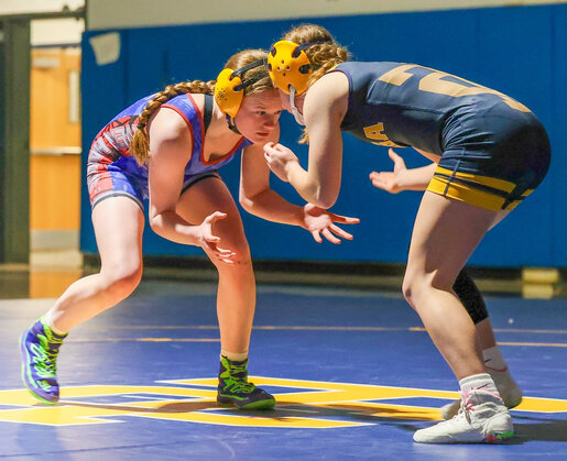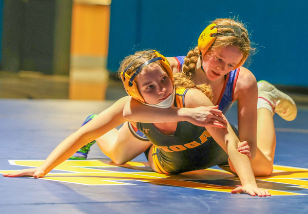 The River Hawks’ Ashlee Crawford-Bauer (114 pounds) pinned Mia Hall in 1:06 and teammate Michaela Daly recorded a 10-0 tech. fall over Grace Howey in 4:11.