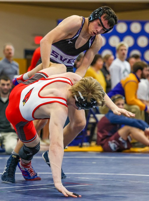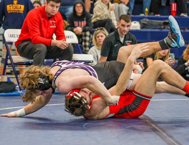 Tioga, which had 15 wrestlers reach the podium — including five champs and five runners-up, ran away with the team title with 319.5 points, while Newark Valley was second with 250.5 points, and Schuyler was third with 181 points. SVEC finished eighth in the 12-team field with 94.5 points.