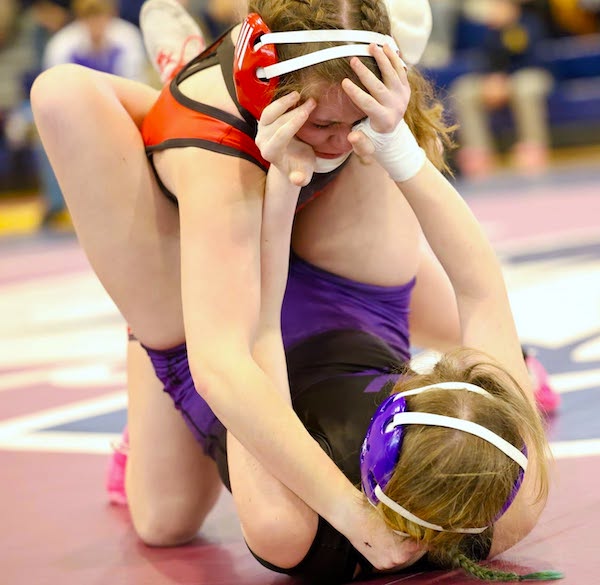 Gregrow pinned teammate Emily LaPorte in 5:29, then decker SVEC's Abigail Russell in 46 seconds, before falling to Tioga's Cora Szymanski in 1:59.
