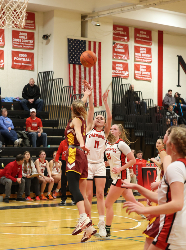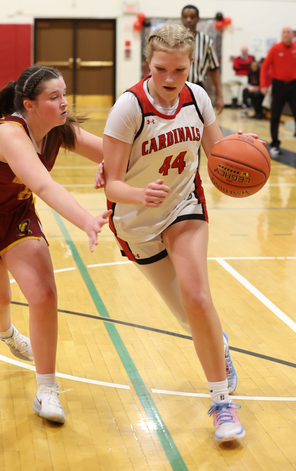 Both teams struggled to find the inside of the rim in the first half in the IAC Large School crossover game, but fortunately for the Cardinals, they were able to warm up after halftime to claim a 39-16 victory.