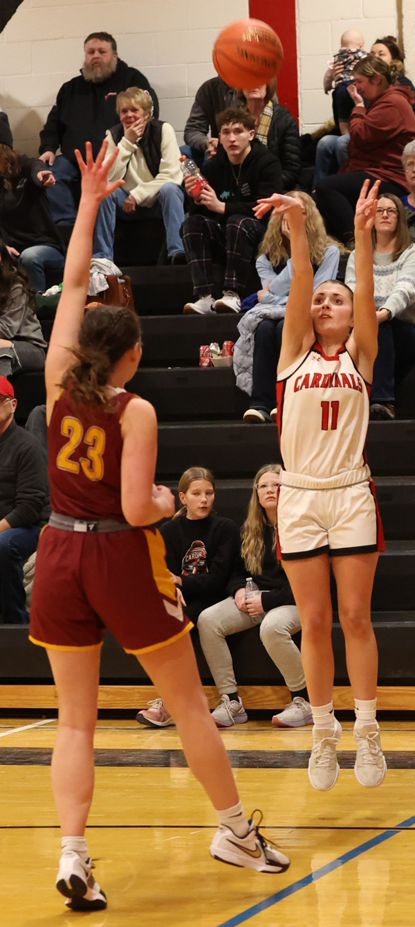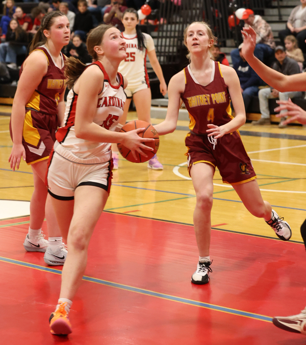 Whitney Point’s Bree Bechtel connected on a conventional 3-point play to trim the lead to 15-11 in the first minute of the third quarter.