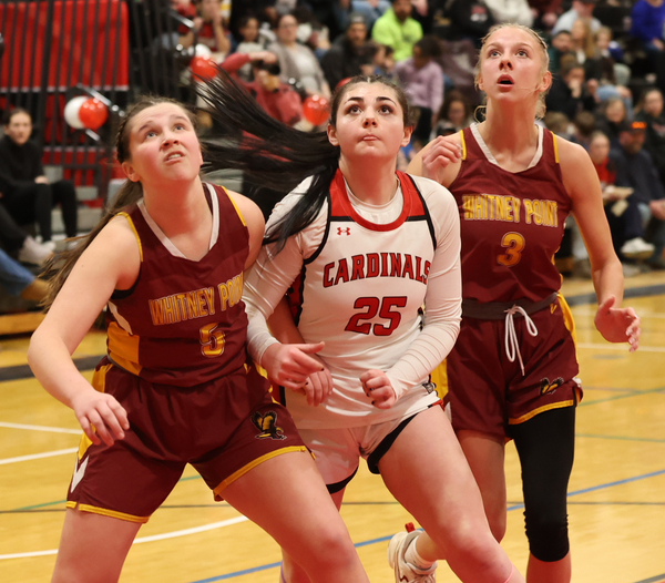 Of Newark Valley’s 48 rebounds, 32 came at the defensive end of the court. The Cardinals also blocked 12 shots and grabbed 13 steals.