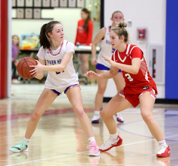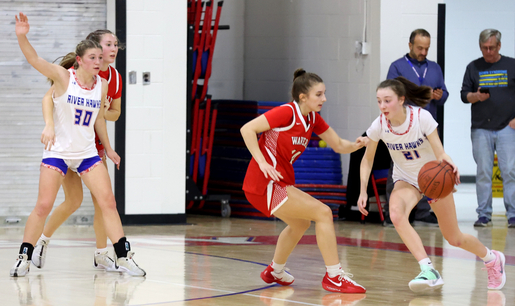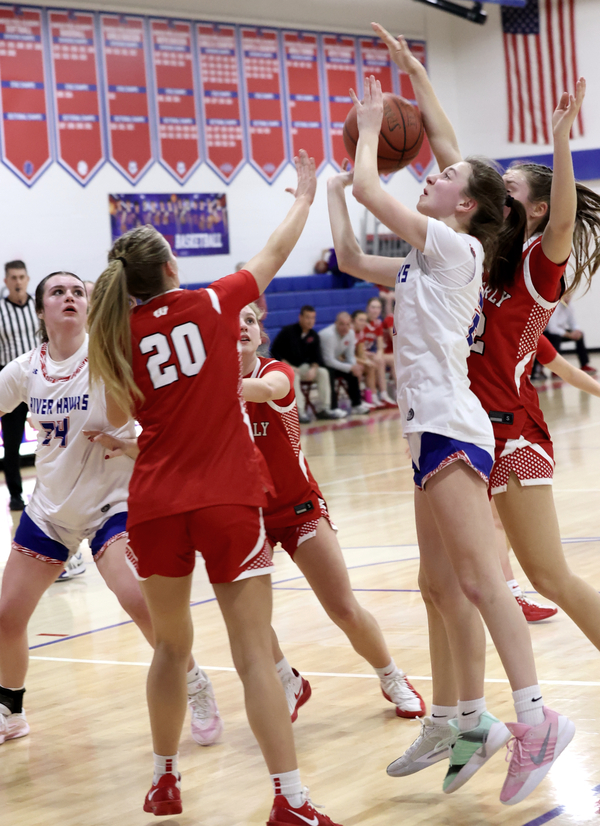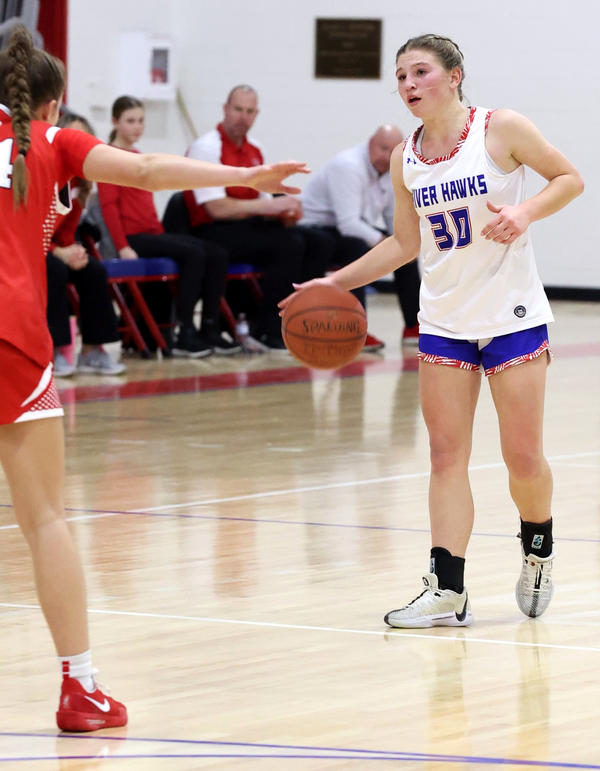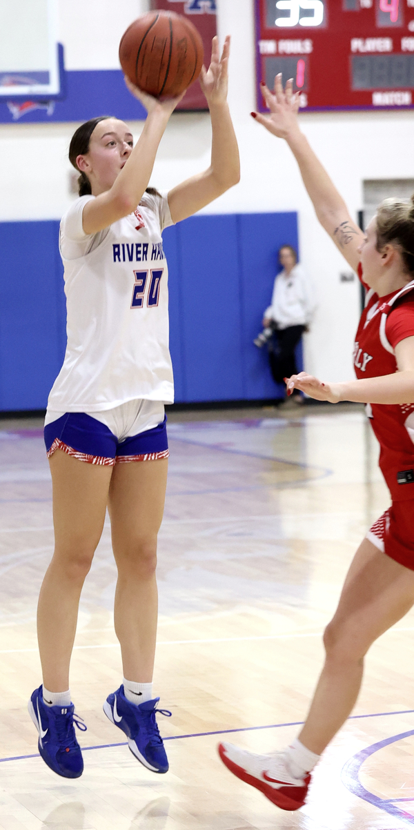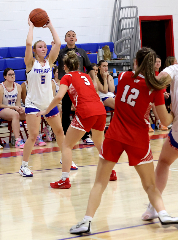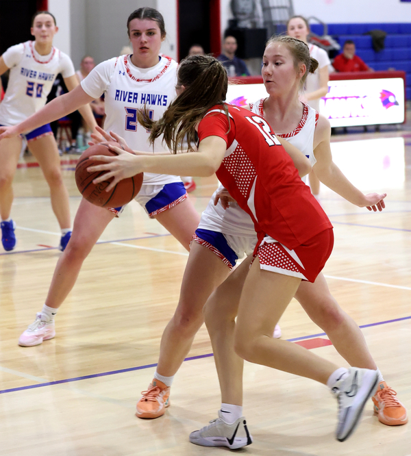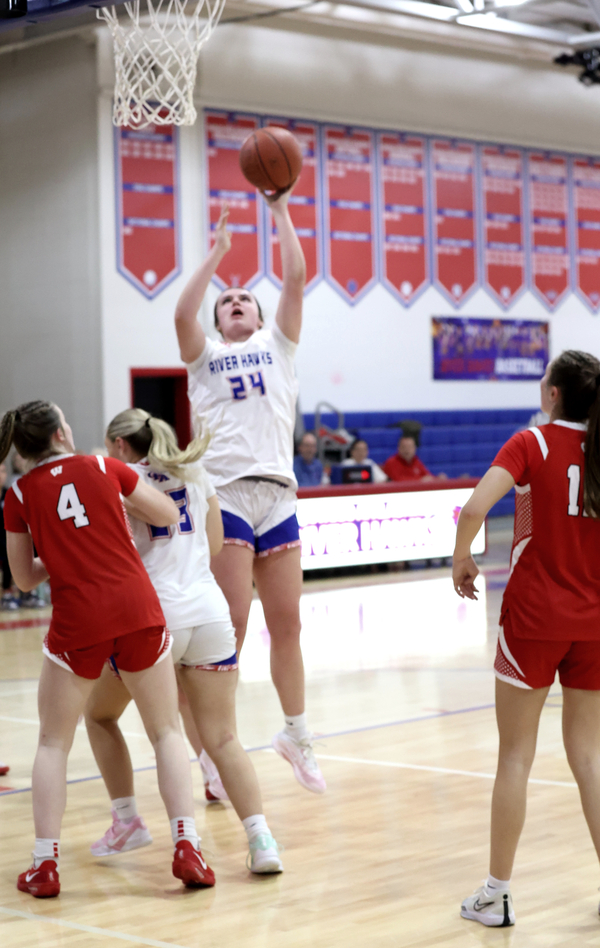 A basket from Keely Wicklund put the River Hawks on the board about 2 ½ minutes into the first quarter, then Searles wrapped a pair of buckets around a Twedt free throw for a 6-1 advantage.